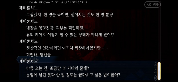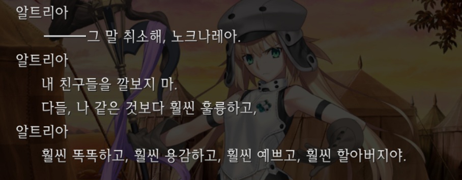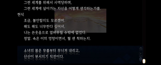뭔가 회상? 종을 울릴때마다 무언가 이런식으로 나오는데 왤케 마음이 안 좋은지...... 흑 캐밥이 알트리아를 보고 서술하고 있는 거겠지.역시